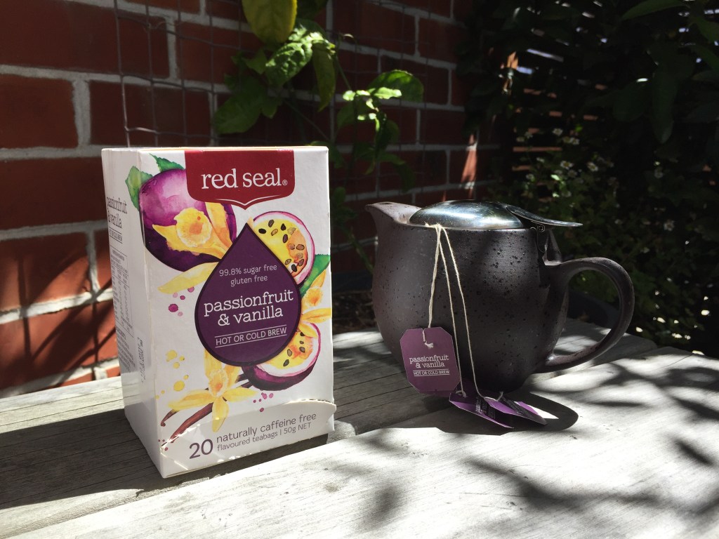 Red Seal’s ‘passionfruit and vanilla’ is my new pick of hot and cold tea. I’ve made it strong in this little pot and once cooled put the whole teapot in the fridge and pour as desired for cold drinks. It’s a hit with friends too. As you can see this box was broken into before photographing. You have to taste before recommending!